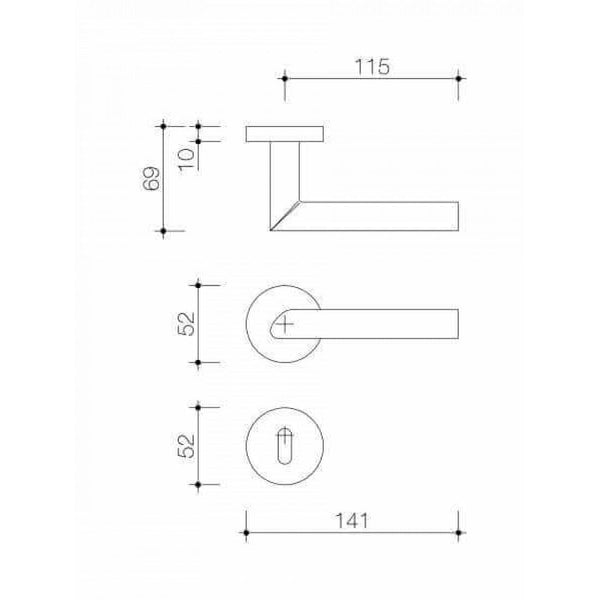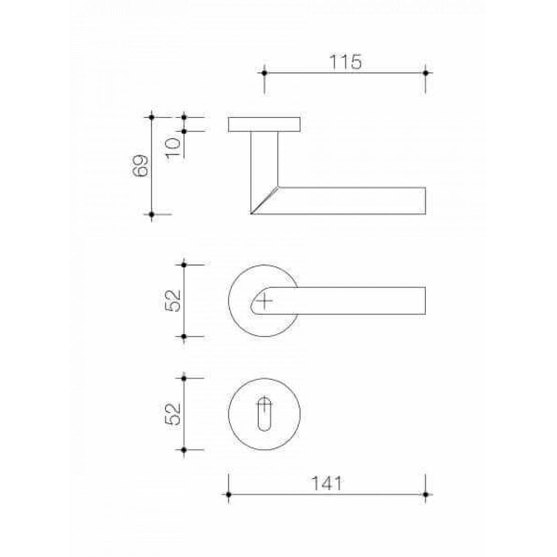 Deurklink "Fasano" op rond rozet 52mm met CLAQ montage systeem RVS 316+
