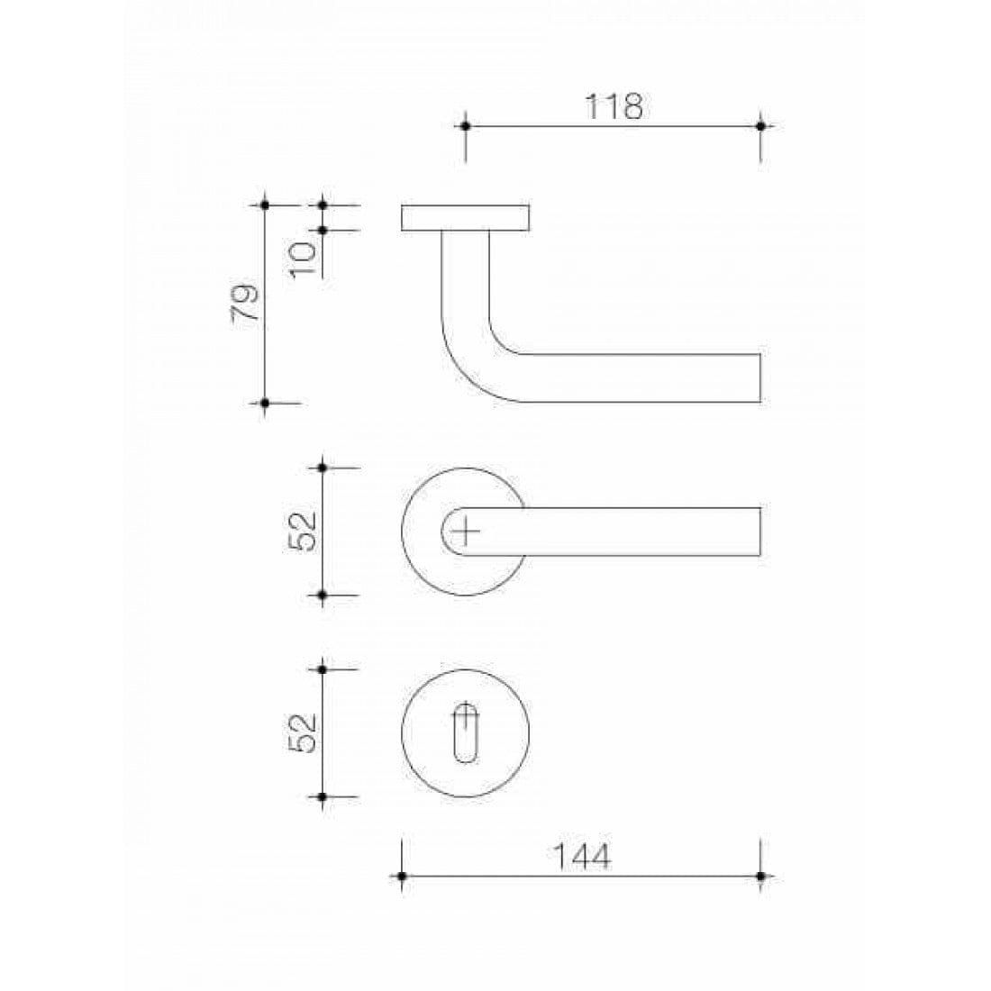 Deurklink "Riva" op rond rozet 52mm met CLAQ montage systeem RVS 316+