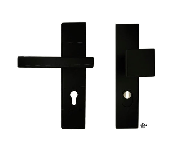 De Veiligheidsset vierkant langschild met antikerntrek beveiliging in de kleur zwart en SKG3 keurmerk, met een combinatie van een knop aan de buitenkant en kruk aan de binnenkant, is dit een uitstekende keuze voor het beveiligen van je deur. De rechthoekige vorm van het schild voegt een esthetische touch toe aan je deur, terwijl de antikerntrek beveiliging je beschermt tegen inbraakpogingen waarbij de cilinder uit het slot wordt getrokken.